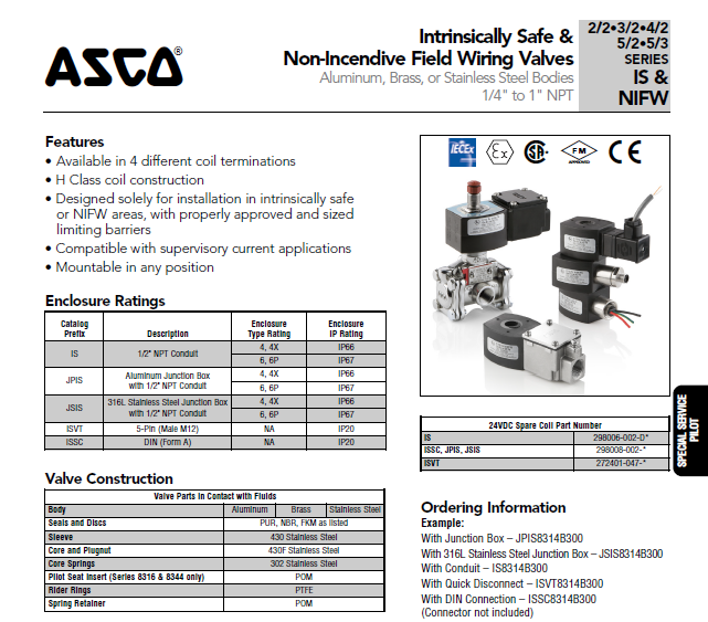 美國ASCO本安防爆電磁閥 JPIS8551B313